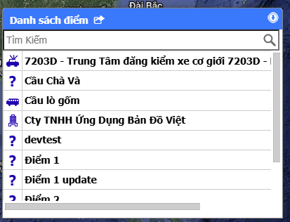 - Danh sách điểm: danh sách những điểm đã tạo, nhập tên điểm vào ô để tìm kiếm điểm