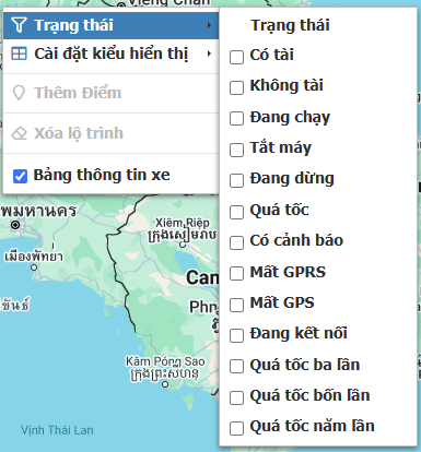 - Tick vào trạng thái nào thì danh sách xe sẽ lọc ra xe đang có trạng thái đó để hiển thị