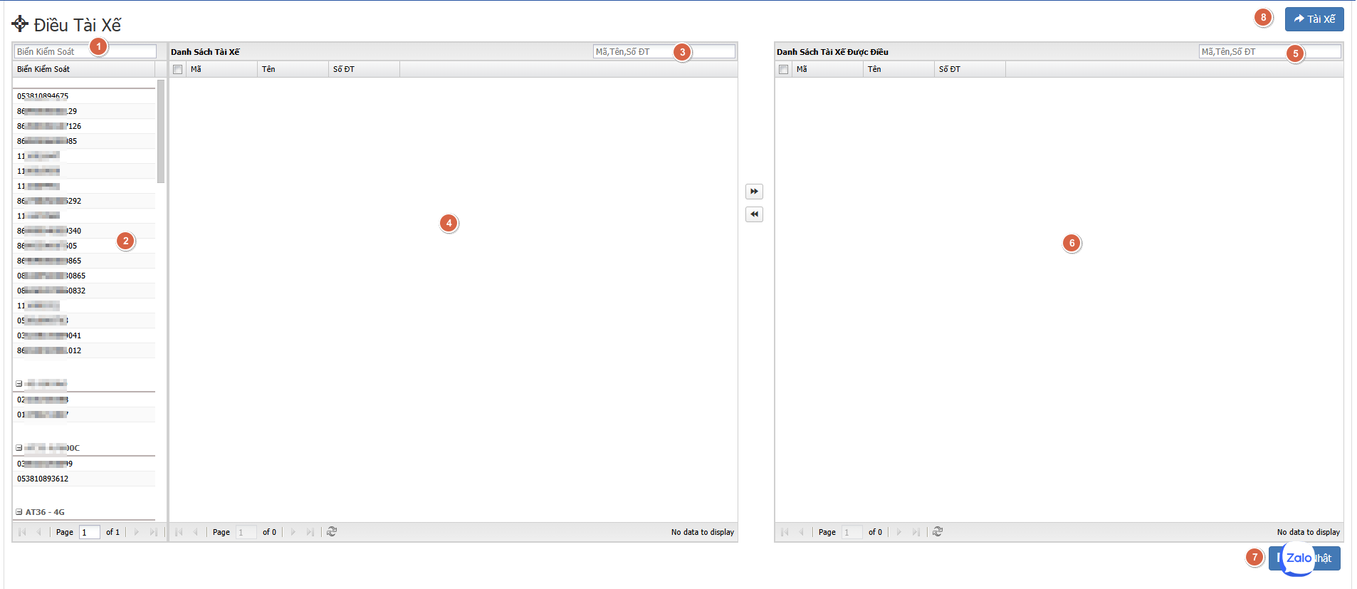 | 8 | Tài Xế | Bấm để quay lại màn hình danh sách tài xế |