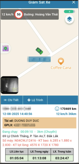 - Tại màn hình này có đầy đủ các thông tin giám sát xe cơ bản giống như khi đăng nhập vào 1 tài khoản trên app, nhưng chỉ có thông tin của 1 xe cụ thể