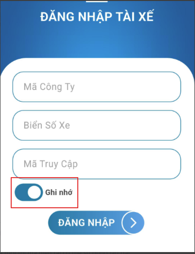 - Nhập thông tin Biển số xe, CompanyId, OTP có được trên web vào các ô tương ứng trên app rồi bấm Đăng nhập