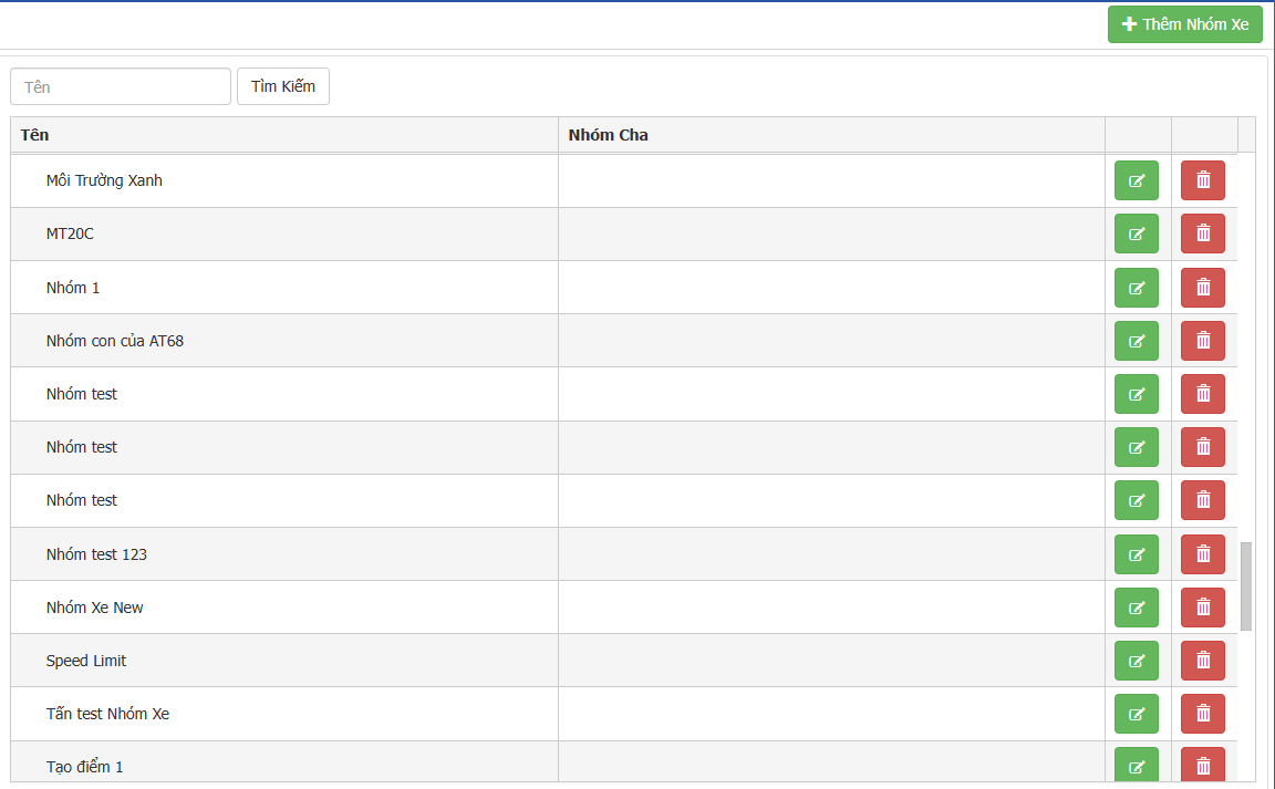 - Nhập tên nhóm xe vào ô rồi bấm Tìm Kiếm để tìm nhanh nhóm xe